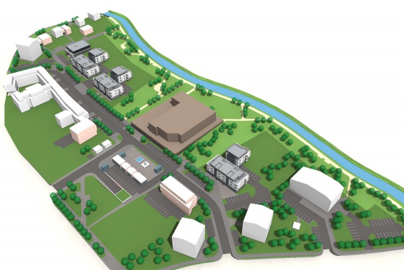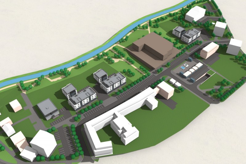 Novo rješenje je prikazano detaljnijim 3D modelim dok je postojeća izgradnja prikazana volumno, u stilu maketa. Također, novo je i rješenje trga sa podzemnom garažom.