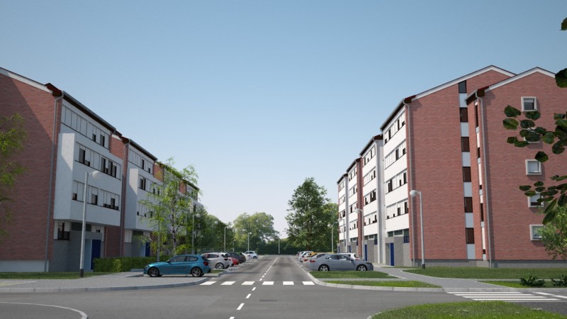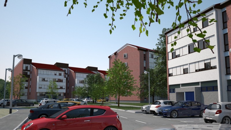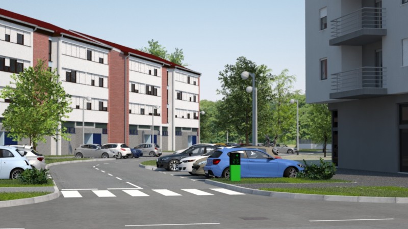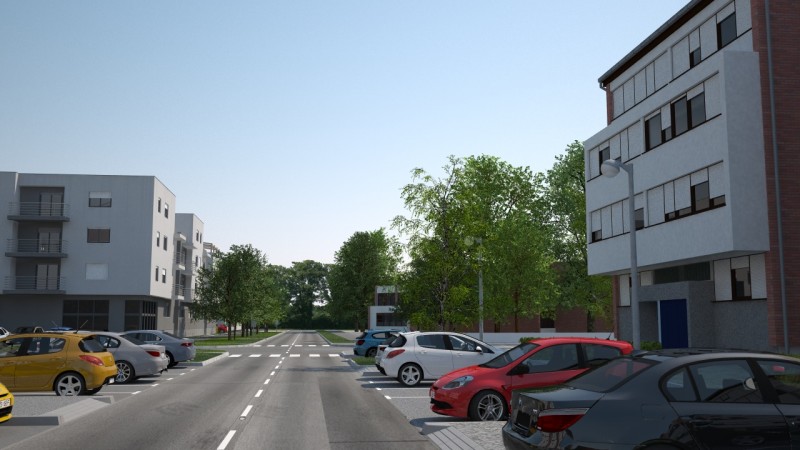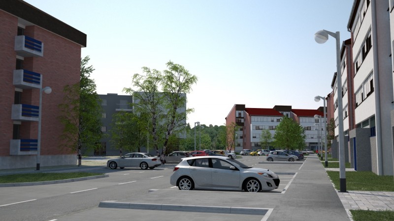 Kako bi mogli realizirati ilustraciju načina rada sustava za nadzor parkinga (sljedeći projekt u galeriji) bilo je potrebno pripremiti i odgovarajući okoliš koji bi što bolje dočarao tipičan gradski kvart. Budući da su modeli iz naših vizualizacija projekti novijeg datuma sa riješenim parkingom na vlastitoj parceli, kao predložak za virtualni kvart smo uzeli zgrade i ulice zagrebačkih naselja Jarun i Špansko u kojima je danas, 30-tak godina nakon izgradnje, vidljiv problem nedovoljnog broja parkirališnih mjesta dok se njihov izgled može poistovjetiti i sa nekim drugim gradovima.